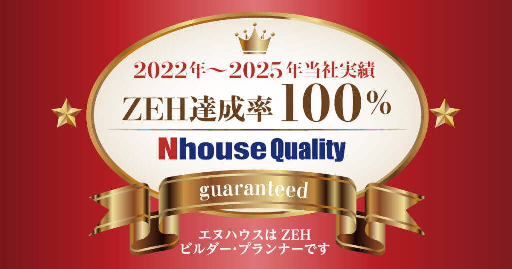 外断熱工法による、高気密&高断熱な高性能住宅は2020年から5年間連続でZEH達成率100%を実現しています。