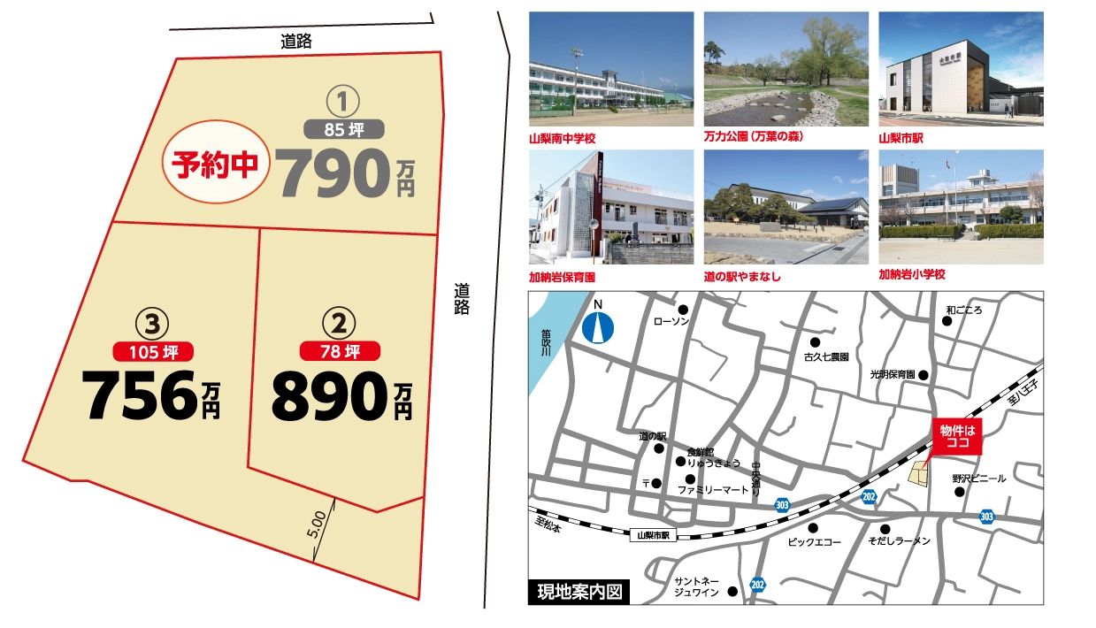 山梨市上神内川 (山梨市駅) 住宅用地 3区画