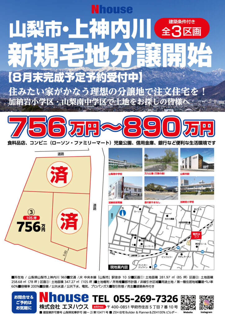 | 所在地 | 山梨県山梨市上神内川 969 | 用途土地 | 第一種住居地域 |